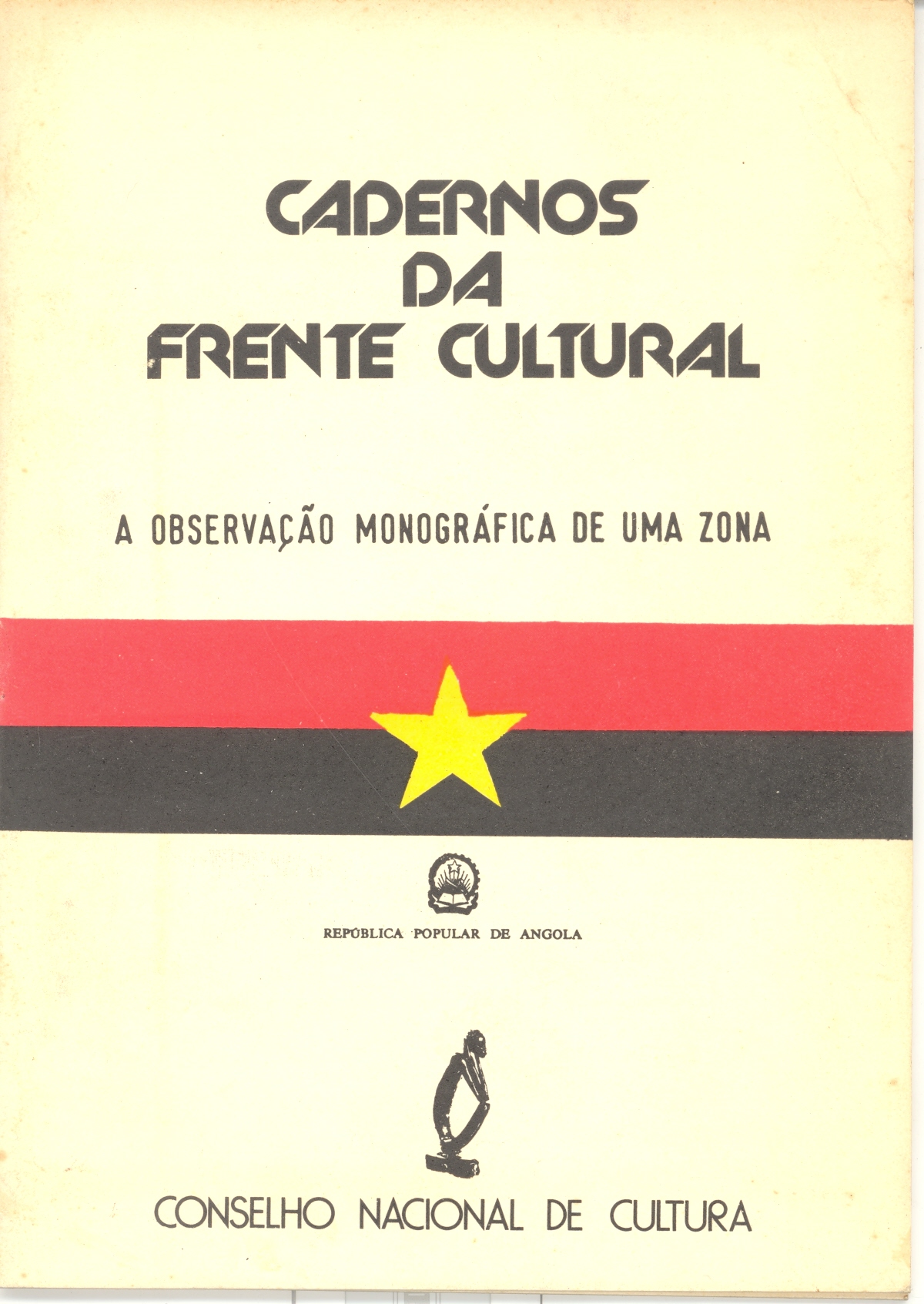Titulo: Cadernos da Frente Cultural, a observação monográfica de uma zona Autor: Concelho Nacional de Cultura Editor: Republica Popular Angola Ano Edição: 1977